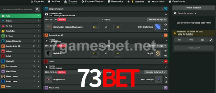 O 73bet oferece uma grande seleção de opções de apostas em e-sports com probabilidades competitivas